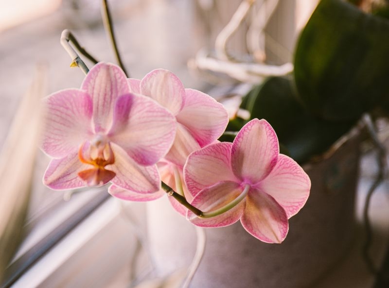 Most tropical orchids prefer humidity levels ranging from 60% to 80%. With most houses’ winter humidity levels averaging around 30%, orchid gardeners frequently use a humidifier or place their orchids on rubber grids put in waterproof trays or gravel-filled trays filled with just enough water to avoid touching the roots. Some orchids benefit from misting as well.