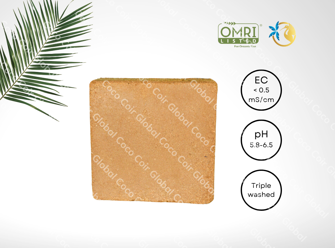 A standard brick or three coconut fiber weighs about 1.43 pounds (650 grams) and expands five to seven times in volume when water is added.