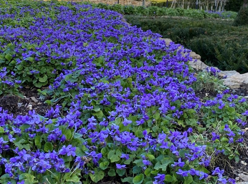 Some of the best purple kinds, if you can get them, are ‘Queen Charlotte’ (early flowering, floriferous, and strongly scented), ‘The Czar’ (a long-stemmed historic form with a good perfume), and ‘Baronne Alice de Rothschild’ (which has enormous flowers atop long stems and blooms early). There are also white and pink hybrids, although the species varieties (V. odorata ‘Alba’ and ‘Rubra’) are the most common.